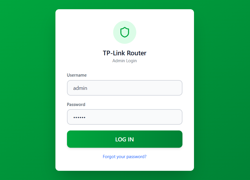 When the TP-Link router login page appears, you will see a login form asking for username and password. Enter your credentials to access the admin panel: